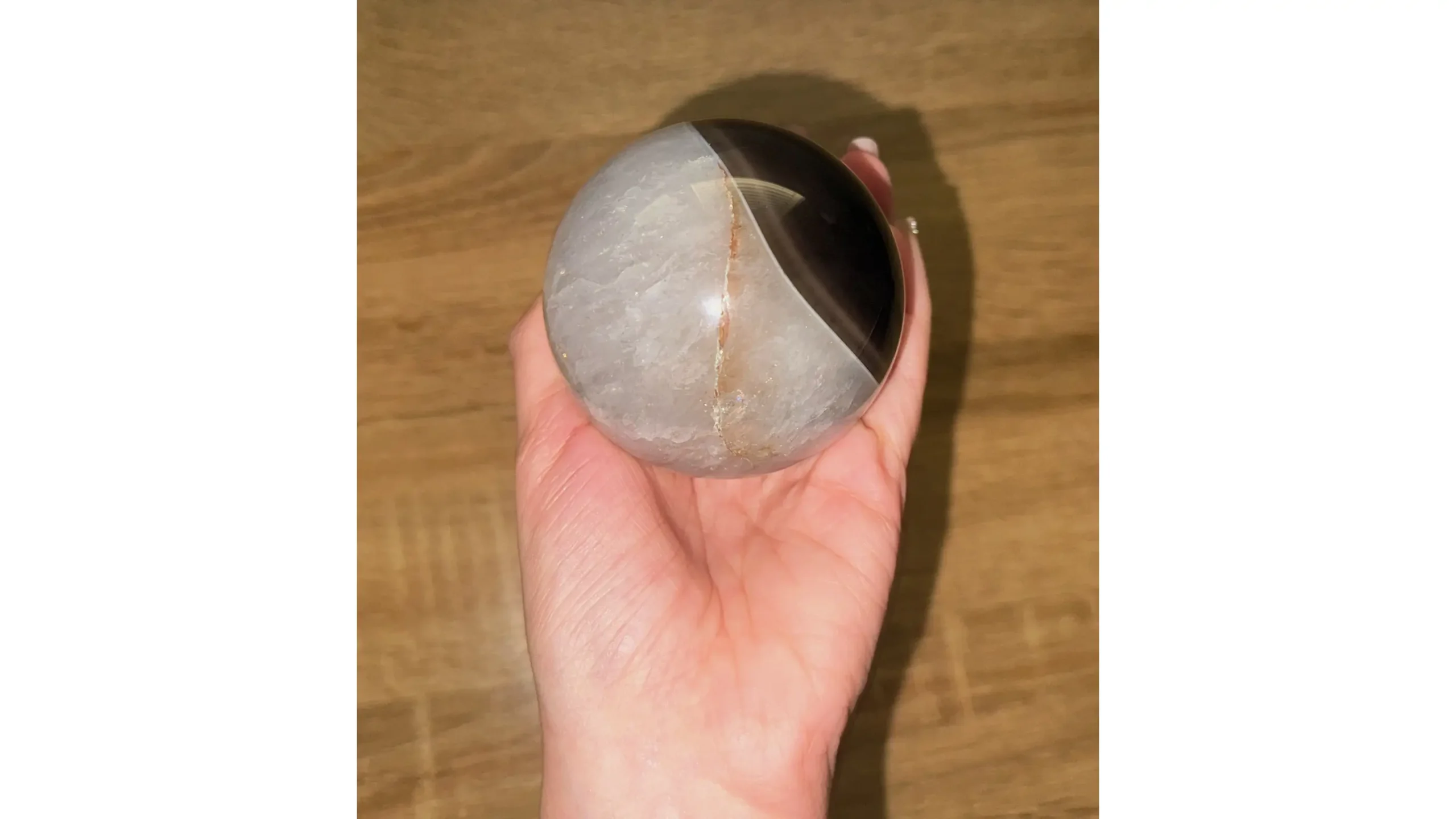 This rare fusion of Shadow Agate + Ice Quartz holds the energy of perfect duality.