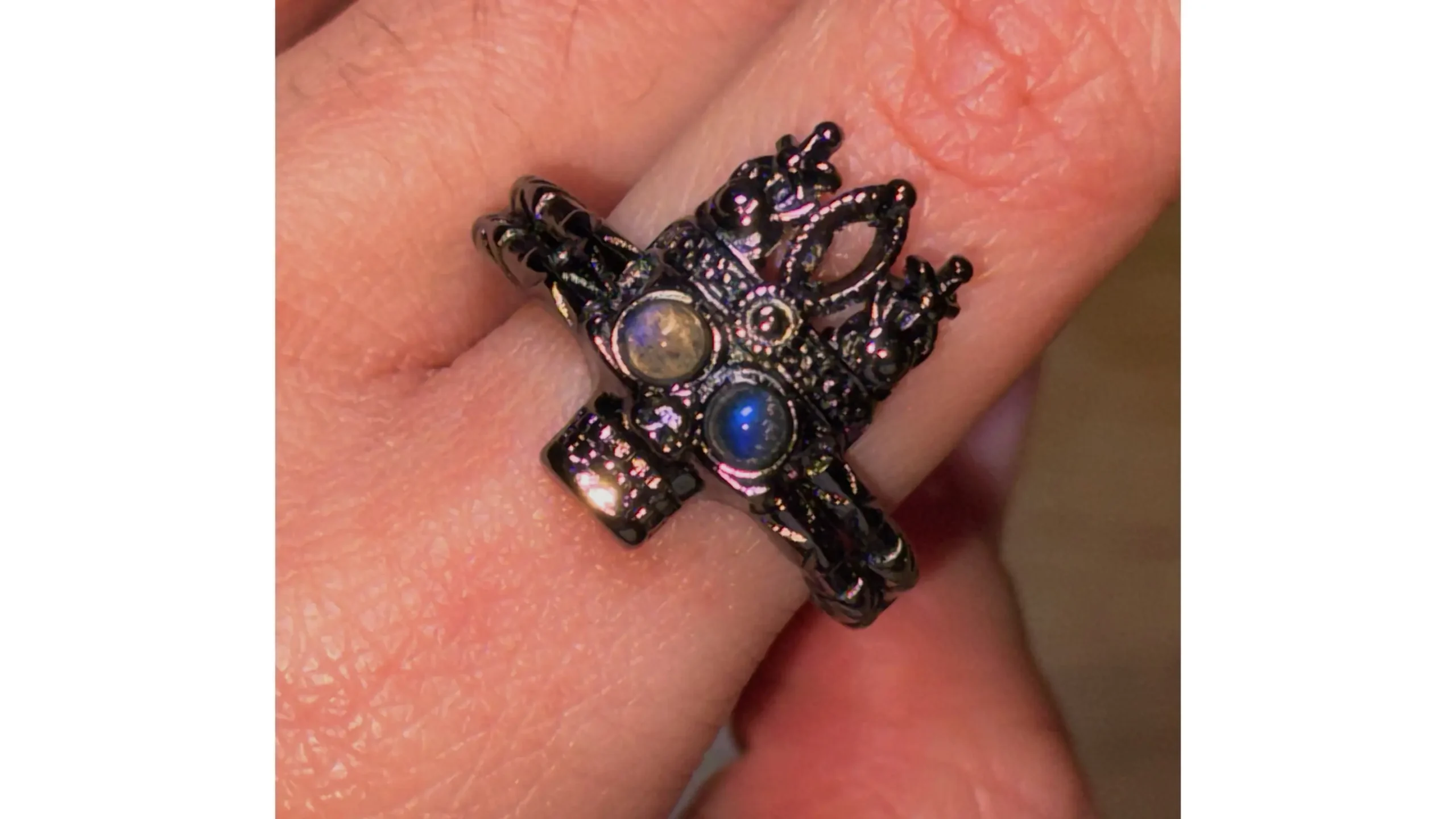 Thalair is a Labradorite skeleton ring crowned in silence.. a relic of higher sight, awareness, and air-born dominance.